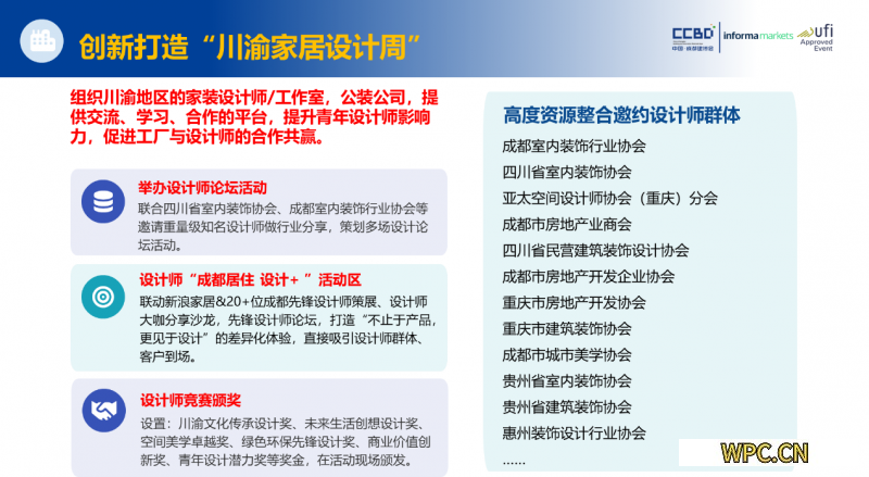 设计重塑空间,美学赋能产业。作为“设计之都”,成都汇聚了西南地区67%的知名设计机构,创意资源富集。2026中国成都建博会创新打造“川渝家居设计周”,联合重庆市建筑装饰协会、亚太设计师协会重庆分会、成都市建筑装饰协会、四川省室内装饰协会、成都室内装饰行业协会等权威机构,策划多场设计主题展与专业论坛,推动设计价值向产业价值高效转化。