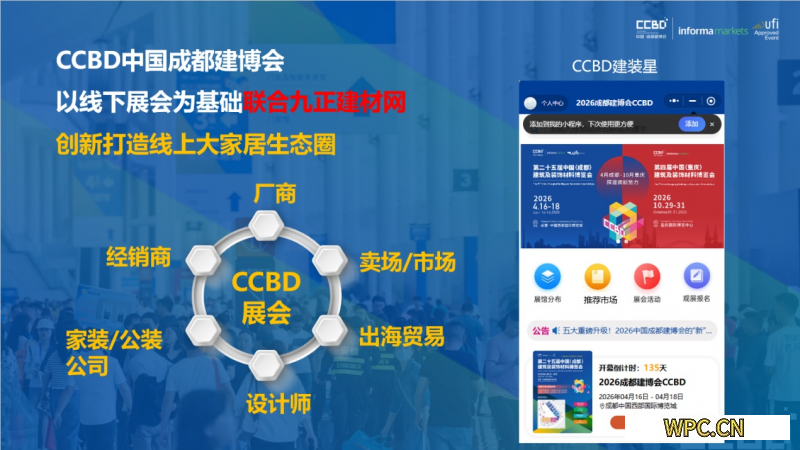 AI、大数据等数字技术加速渗透,推动展贸模式迭代升级,线上展厅成为行业发展新趋势。2026中国成都建博会主动拥抱变革,与九正建材网达成深度战略合作,联袂打造数字化平台【CCBD建装星】,构建线上线下融合的大家居行业新生态。