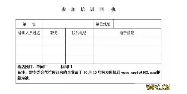 培训对象: 塑木生产、塑木机械加工、塑木模具、塑木原料及助剂供应等相关企业的生产技术人员、或者是负责技术的管理人员。