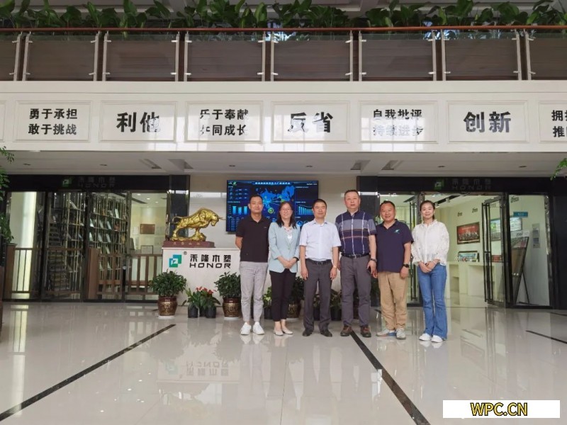 2022年6月6日中国塑协塑木制品专委会吴劲松理事长携秘书处和专委会专家组专家余继春,副理事长单位吉林华邦新材料科技有限公司董事长李方圆一行拜访了副理事长单位安徽国风木塑科技有限公司董事长贾红滢、总工程师方晓钟、副总经理肖磊与技术质量部部长冯娟。